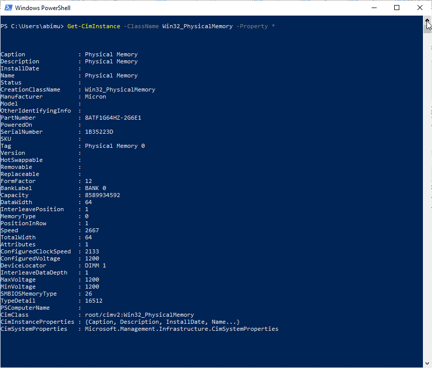 Get-CimInstance -ClassName Win32_PhysicalMemory -Property *