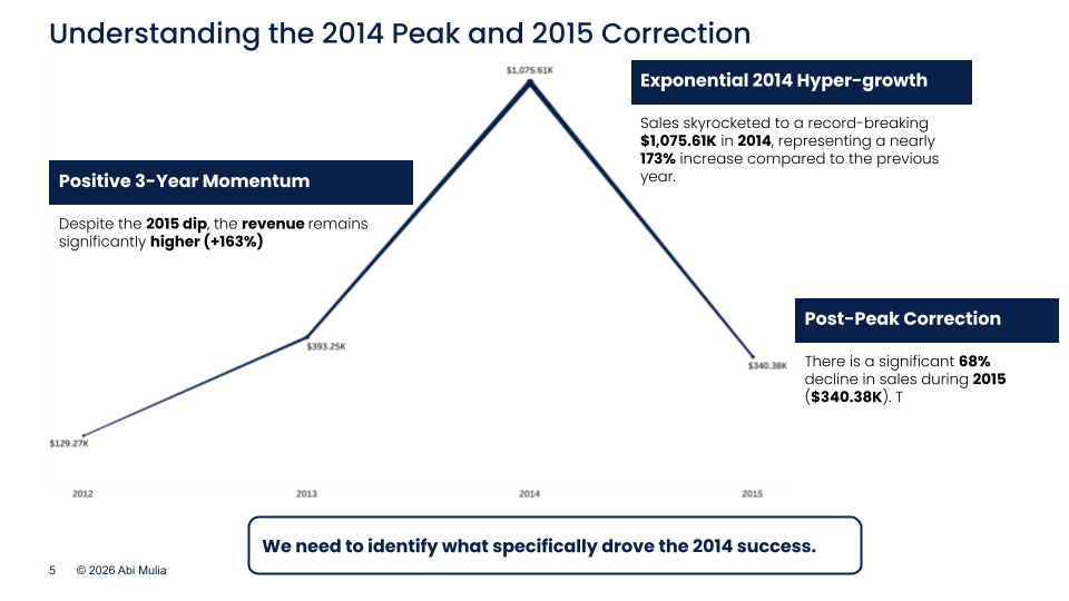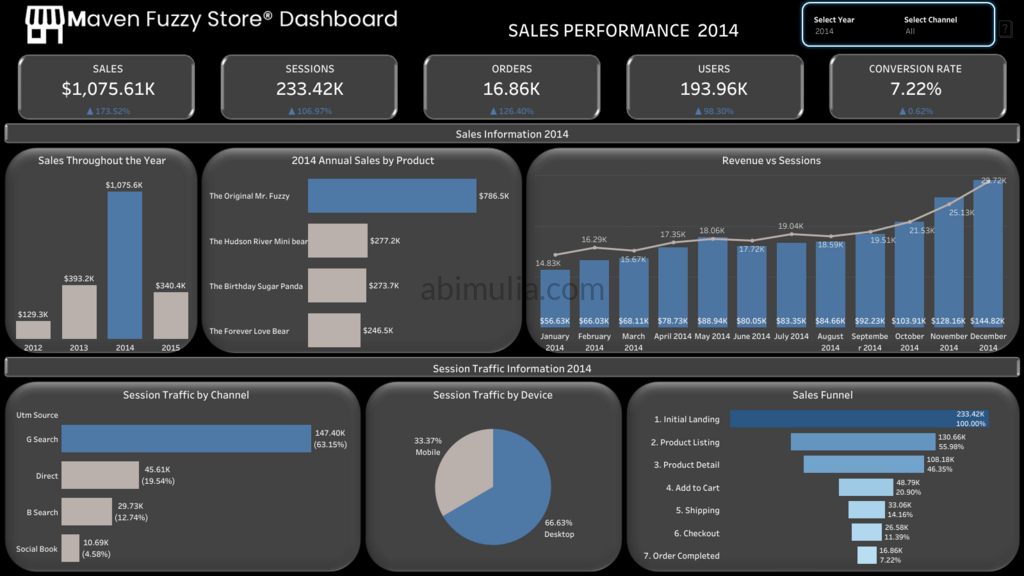 Maven Fuzzy Factory is a D2C e-commerce retailer selling teddy bears that launched in 2012. After achieving a historic revenue peak of $1,075.61K in 2014, the business faced a sudden 45% revenue decline in early 2015. This project analyzes marketing performance and website funnels to identify root causes and restore growth momentum.
